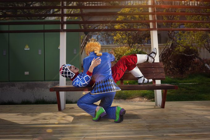 55 158 今日更新....长椅名场景来了! Mista:王木山 / Giorno:零下 Narancia:Moe然 PHX:凉风さん #ジョルミス #JOJO #cosplay 19/02/17 02:38