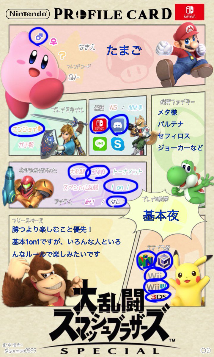 いろんな人と楽しく遊びたいので作りました ディスコードあるのでグループの勧誘など大歓迎です #スマブラ好きと繋がりたい #スマブラ自己紹介カード #スマブラSP自己紹介カード #スマブラSP
