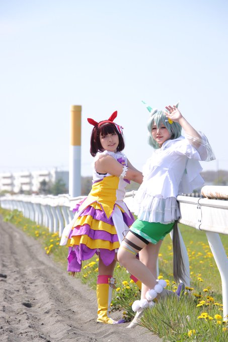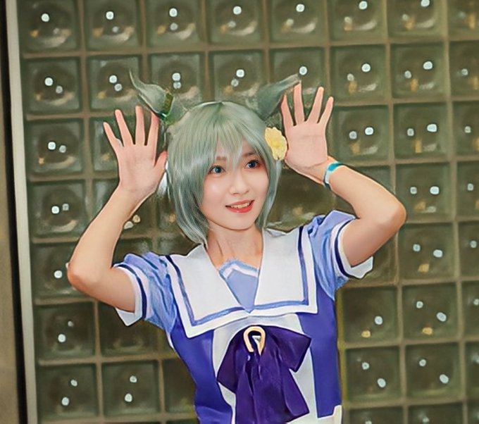 ①@kakimoti1230 ②@TR_searchlight 撮影ありがとうございました!だいぶ顔を可愛くしちゃいました(笑)耳が限界突破して囲みでも送ってくれる方ほんとに有り難い…… #ワンフェスコスプレ #ワンフェス2023 #セイウンスカイ