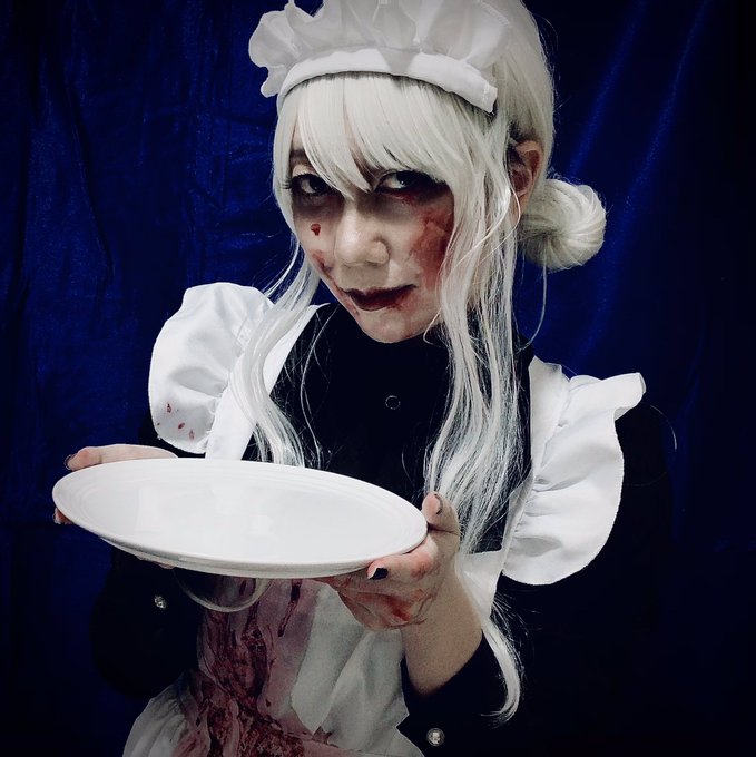 「わたくしはディナーの準備をして参ります」 「お客様はお先にお風呂をお使いくださいまし」 「お湯からお上がりになったらお身体をよくお拭きになり、こちらのクリームとパウダーをお肌によく擦り込んでくださいましね」 #Halloween2022 #Halloween #コスプレ #Cosplay #ゾンビ