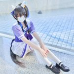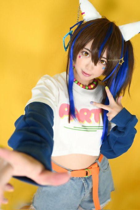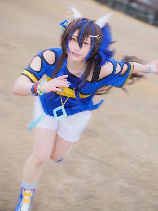 おはヘリオス〜🤟🏻💙💛 ウマ娘🐴ダイタクヘリオス💙💛 (私服ver) 「 ウェーイ!爆盛れな感じで シャッターおなしゃすっ🤟🏻 」 #cosplay #ダイタクヘリオス #ウマ娘になってしまいました