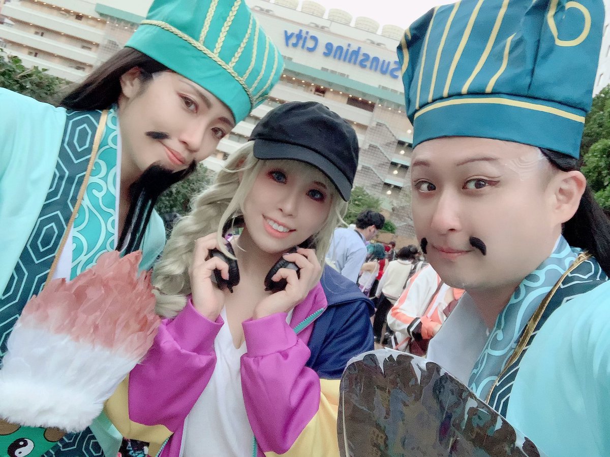 土曜日の池ハロ1日目はパリピ孔明やってました 古今東西、孔明に遭遇した人は皆『あ、孔明だ…』て言うの面白かったです 孔明:@rensk0 英子:たま 2、3枚目Photo:@doyoubino_nuco 4枚目Photo(右孔明):@j_entamecosplay #池袋ハロウィン2022 #池ハロ2022 #池ハロ #パリピ孔明 #珠子スプレphoto