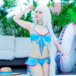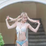 遲來的比基尼 (• ▽ •;) 風好大~ Photo by @AkinaYume #ビキニの日 #明日方舟 #羽毛筆 #Arknights #arknightscosplay #アークナイツ #cosplay #cos #coser #cosplayergirl