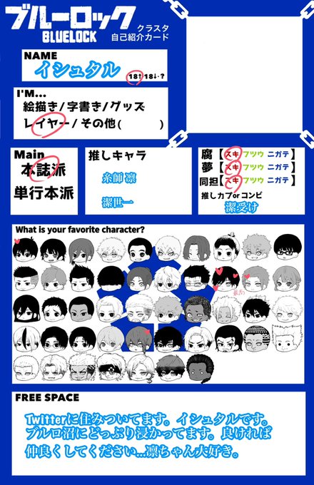 ⚠︎cos isg中心に腐/夢 地雷なし/左右相手非固定 ♡&RTお迎え レイヤー垢復帰のためお話していただけるフォロワーさん募集いたします! 詳細画像ご確認ください⚽️💙 #ブルロ好きさんと繋がりたい #ブルロレイヤーさんと繋がりたい #ブルーロック絵描きさんと繋がりたい