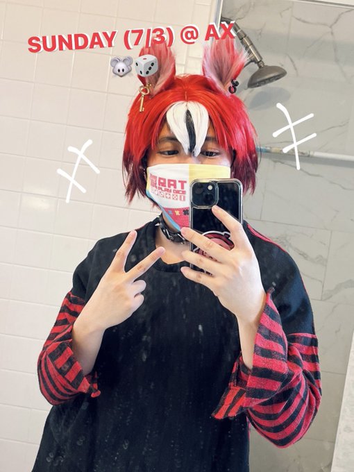 HAYKO IN DA HOUSE ✌🏼🐭🎲 My first time fully cosplaying and its scuffed but can’t wait to wear it at AX (with the canon design, not this sweaty sweater but it looks good 😜) #ベーアート #illustrayBAE