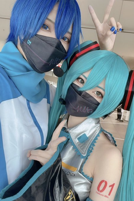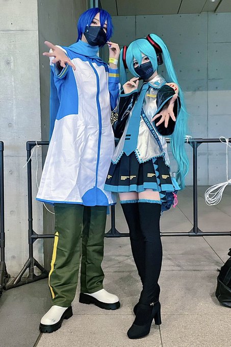 おはようございます! #マジカルミライ10th 2日目の朝ー!! 今日は朝物販一通り買って、企画展内の写真と動画撮って、昼公演のライブ行って、16時から和堂さんのブースでお手伝い❄️ 今日も一瞬そう😇 写真は昨日撮ってもらったシズゆきカイミク併せ💙💚 #マジカルミライ10thコスプレ #しらゆきミク