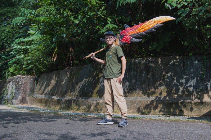 【Monster Hunter 大劍-赤红之翼 レッドウィング】 我自製魔物獵人的招牌武器火龍大劍。 整把大劍長187cm,全手工雕刻,成品相當霸氣,我很滿意。 攝影:Arthur Kuo #MonsterHunterRise #cosplay #モンスターハンターライズ #Monsterhuntercosplay #MonsterHunterWorld #モンスターハンター