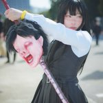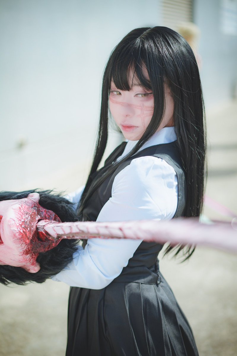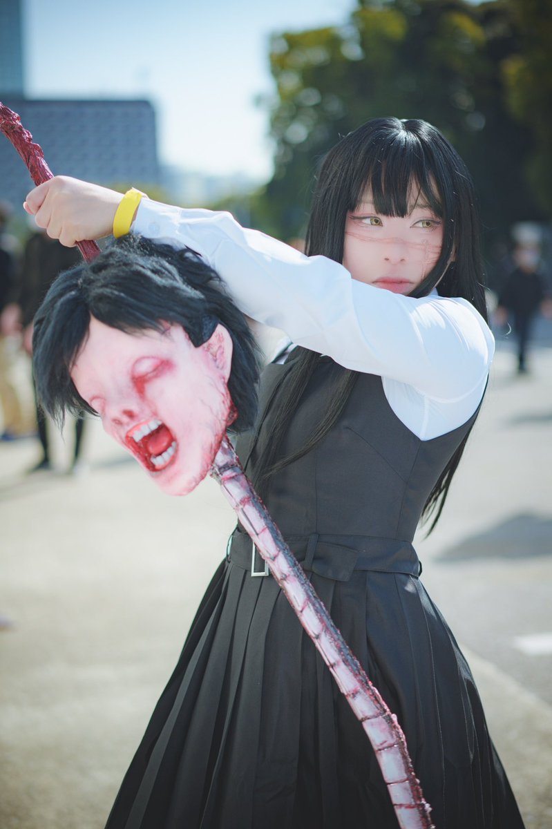 ⚠️cosplay チェンソーマン 三鷹アサ(ヨル) 田中脊髄剣...!!! 📸そらみみさん(@soramimij ) 田中脊髄剣掲げながら移動してたので驚かせてしまった人はごめんね😭 でも我ながら傷メイクも造形も上手く出来てめちゃくちゃよきでした✌️ 今日も田中脊髄剣と寝る😴 #WF2023冬 #ワンフェス2023