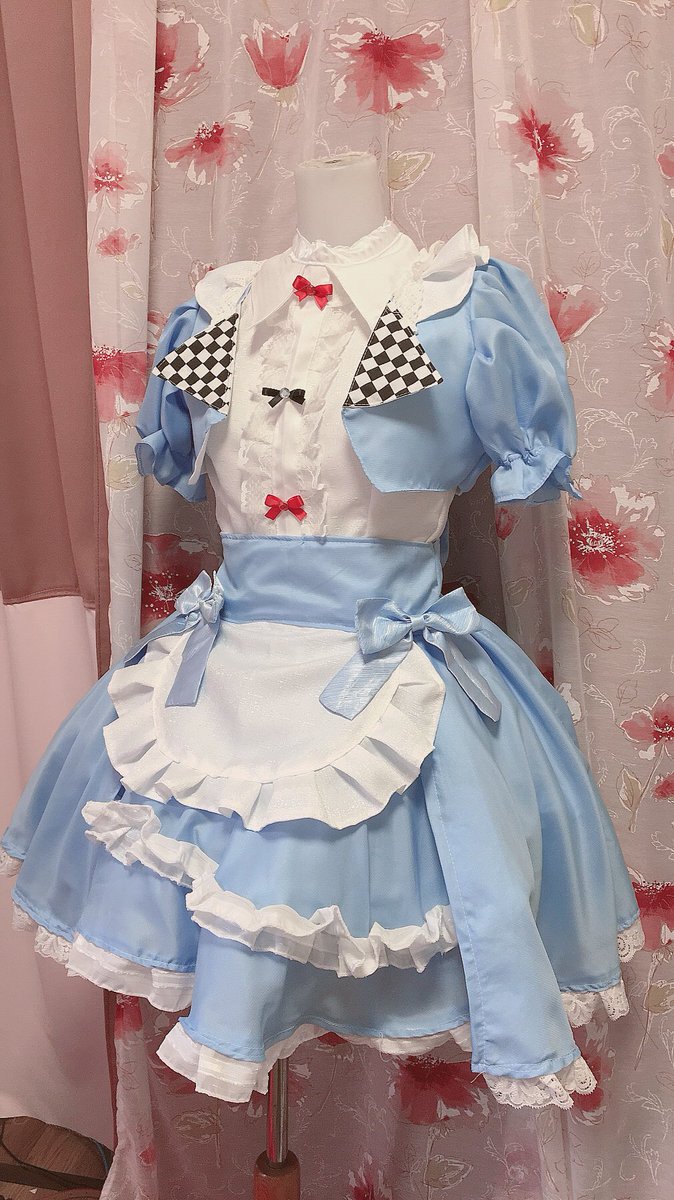 しゅごキャラのアムの アリス衣装 可愛いけどデザインがPEACH_PITさんなのでめちゃくちゃサイブが細かいです アレンジでもうちょいレースつけて可愛いしたい #PEACH_PIT #しゅごキャラ #くじメイト #ありす衣装製作 #不思議の国のアリス #アリス #コスプレイヤーさんと繋がりたい #コスプレ