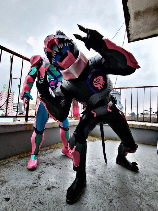 「ねえ一輝、なんでそんなかっこつけたポーズ決めてるワケ?」 『いやだからお前が動き過ぎなだけだって!てか、やめろバイスw』 私1ポーズ撮影の中でこれだけ動けるのすごい😂 さあ、今日の仕事も一気にいくぜ✊ #仮面ライダーリバイス #コスプレ