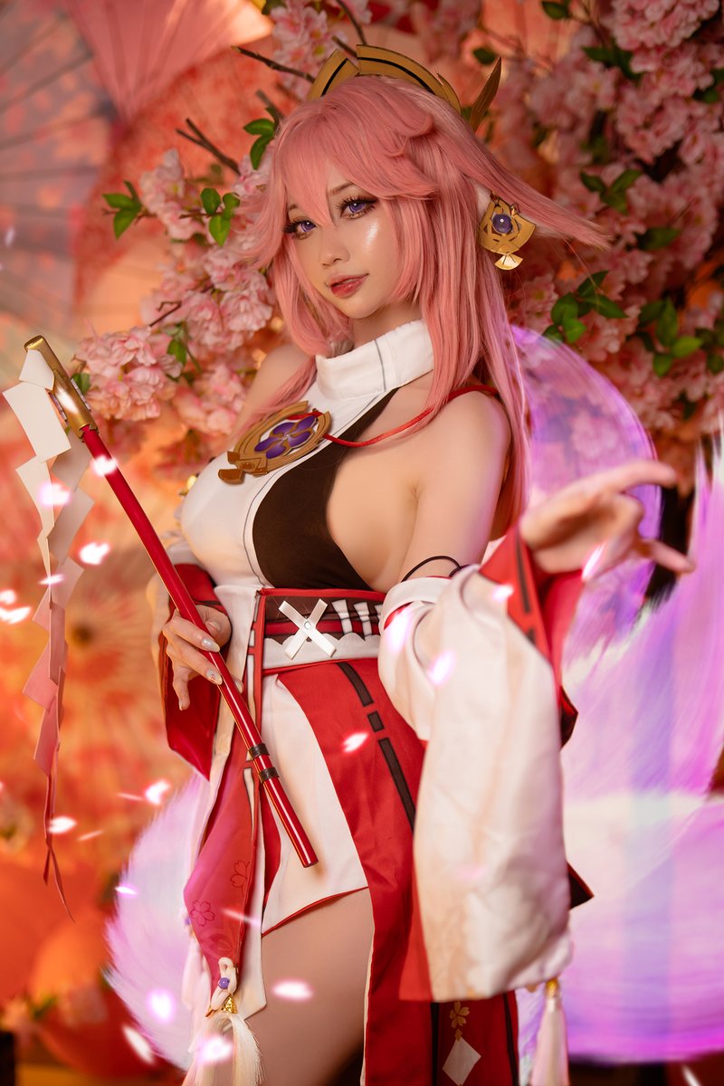 【Cosplay・コスプレ】 ── 原神 / 八重神子⛩ 誕生日おめでとう🌸 📸:我が弟 きなきなもち(@rasberry_pi1114 ) #原神_キャラ生誕祭 #八重神子 #八重神子生誕祭2023