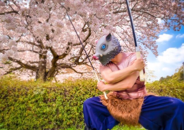 TANKENTAI! TANKENTAI! 🐗✨ Inosuke Hashibira - Demon Slayer 💙 . . big shoutout to @espadasymas for these amazing swords replica ✨ . . #inosuke #kimetsunoyaiba #demonslayer #inosukehashibira #嘴平伊之助 #鬼滅の刃 #嘴平 #鬼滅の刃遊郭編