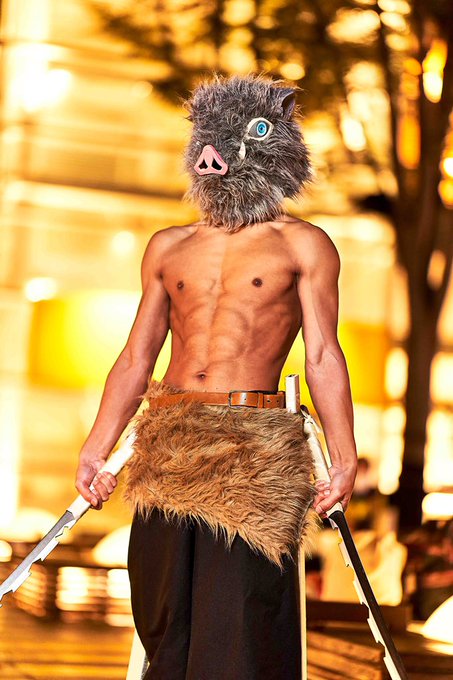 TANKENTAI! TANKENTAI! 🐗✨ Inosuke Hashibira - Demon Slayer 💙 . . big shoutout to @espadasymas for these amazing swords replica ✨ . . #inosuke #kimetsunoyaiba #demonslayer #inosukehashibira #嘴平伊之助 #鬼滅の刃 #嘴平 #鬼滅の刃遊郭編