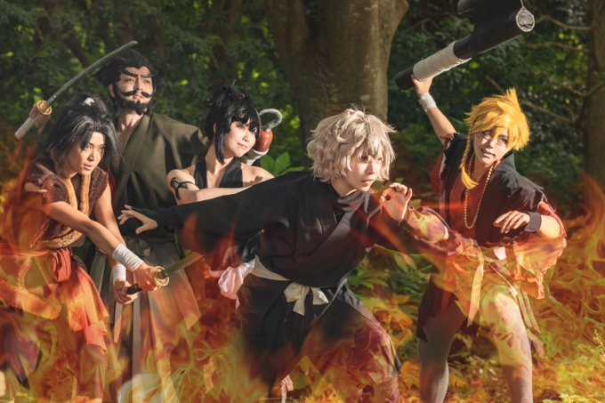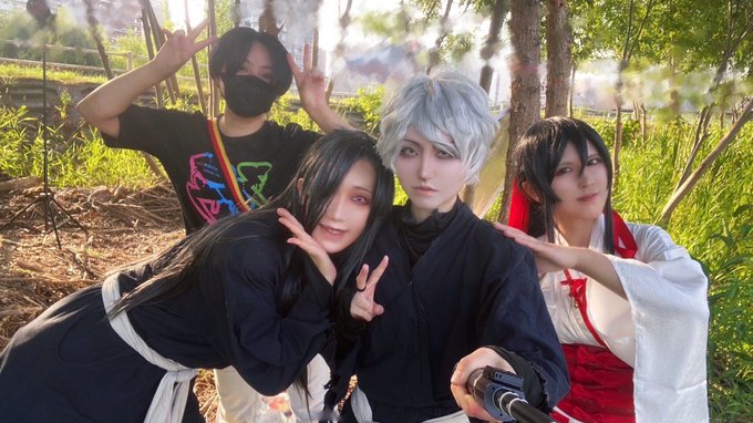 写メ✨ お久しぶりメンバーで集まれて楽しかったー😊 画眉丸わたし いをりんシジャ すず音たん佐切 📷はユマさん😍 川で転んでパンツがビシャビシャになったから、もう全て浸かってきたよ‼️ 神データ楽しみ楽しみ😍 【cos】地獄楽 #地獄楽ファンアート