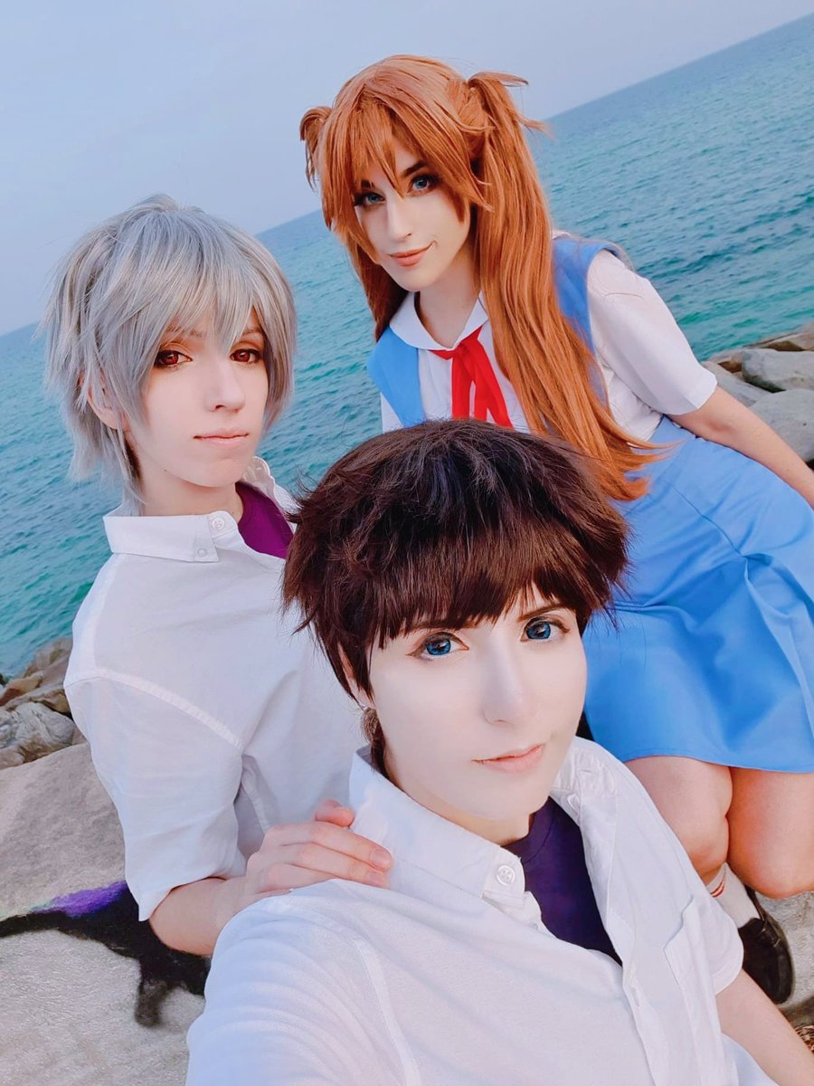 More #Evangelion selfies! @Dori_Daishi - Shinji @ShionNightOwl - Kaworu @Peraperitapera - Asuka #neongenesisevangelion #shinjiikari #cosplay #kaworunagisa #asukalangley #asukalangleysoryu #新世紀エヴァンゲリオン #碇シンジ #渚カヲル #式波アスカラングレー