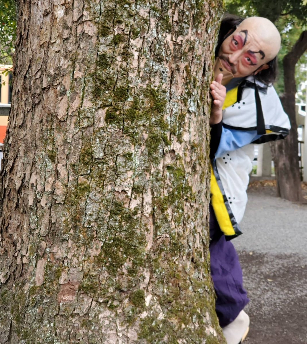 ダイエット 河津桜横のベンチにて忍たま狐に出会う。 日本庭園での撮影を終えて只今休憩中です。 忍者修行、目に見える成果を出すのは中々難しいと、笑ってました。😅 #忍たま乱太郎 #コスプレ #花博記念公園鶴見緑地
