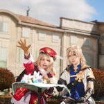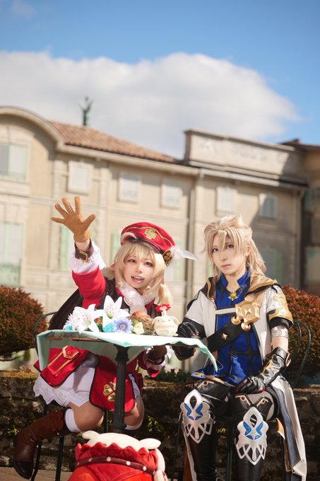 【コスプレ/Cosplay】原神 栄誉騎士のお兄ちゃん、お姉ちゃん! それと、パイモンちゃん! こっちに来て来て! クレー達と、お話ししよう!🍀 アルベド:冴マ(@SaeMagic_) クレー:ぱと Photo by一二三(@123man33) #星の王子さまミュージアム #麗yers #原神コスプレ ※特別な許可を得て撮影しています