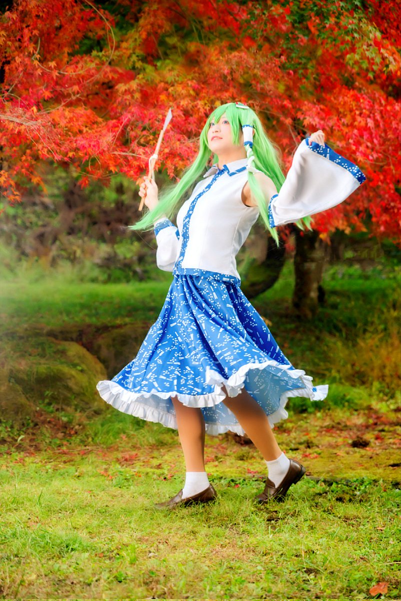 11/6 自然郷東沢さん@YilNsにて 東方Project:東風谷早苗 「見てください!綺麗に紅葉してますよ!」 📷:メッサーシュミットさん@M_Schmitt1 #東方Project #東風谷早苗 #コスプレ