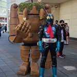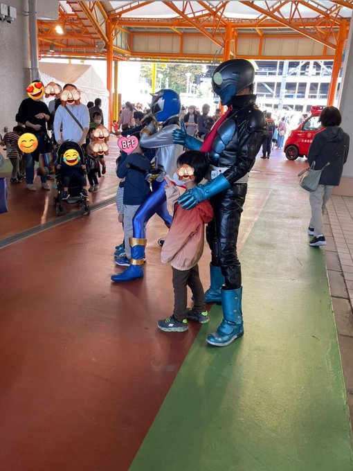 遅報!OTAふれあいフェスタ #コス博 #OTAふれあいフェスタ #特撮 📷by @tamazakiMM さん 競艇場入り口で1st1号trtsuさんと早速の人気ぶり❣️ 競艇場でも❣ 両方共グリに一時間以上💦