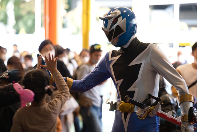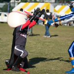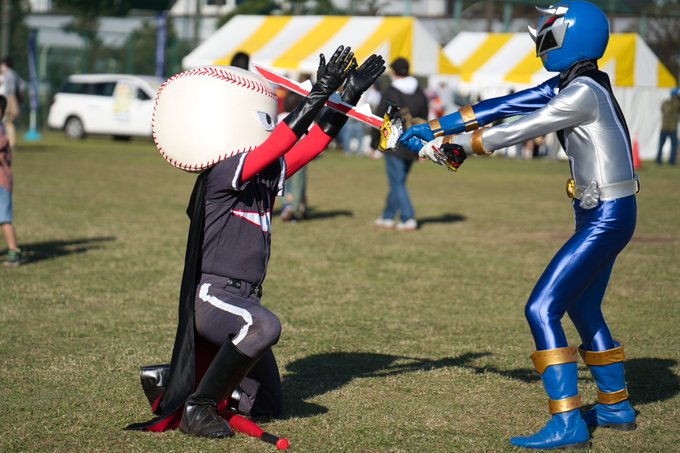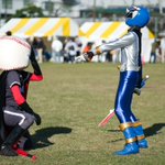 #コス博 #特撮 #OTAふれあいフェスタ 野球仮面(秘密戦隊ゴレンジャー) リュウソウブルー ふれあいフェスタで野球仮面と絡んでみたw 野球仮面がリュウソウ剣を白刃取り!@失敗ww ブルーの腰が引けてるのがイマイチ恰好悪いが💦 野球仮面 上城さん@K_MAABO 📷by やまざきさん @yamazakiMM