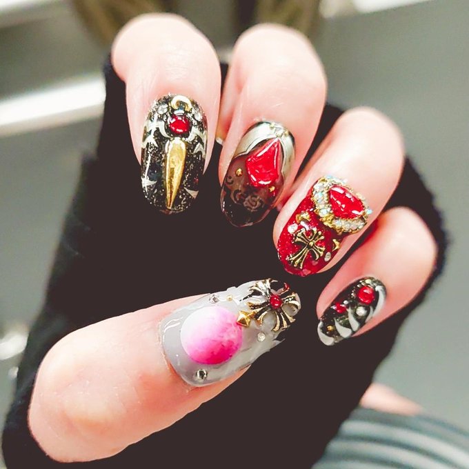 Got these nails done that are Calli inspired ✨ Made by: nd_nail #callillust #MoriCalliope #hololive #hololiveEN #nailart #痛ネイル