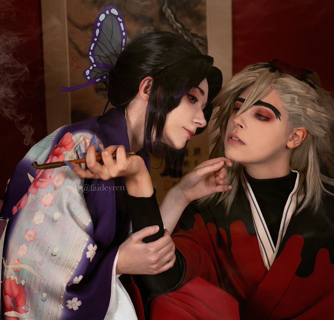 ⚠️コスプレ& cp要素注意⚠️ 童磨としのぶ 🦋@EnterSlope まなみんが何枚かあげてくれたが私もあげよう、 #童しの記念日2023 #童しの 🌈🦋 この辺とても気に入ってる写真です☺️