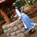 聞いて!きいて! ;∀;)幼少期に会話して以来の再会をしたの!私の小さいときからの推しで結婚式も美女と野獣にしたぐらい大好きなベルと会話したの!しかも結婚式の写真見せたら… 「Congratulation!」て言ってくれたの!もう興奮しすぎて涙目になりながら写真撮った! #美女と野獣 #Dハロ仮装2022