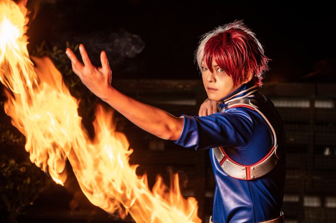 炎上撮影のやつ!! 左側🔥🔥🔥 くっそ寒い中何テイクも付き合ってくれた皆んなありがとう! 撮影おーがさん@guy_ferd レタッチうさぴ@n_h_molding #僕のヒーローアカデミア #轟焦凍