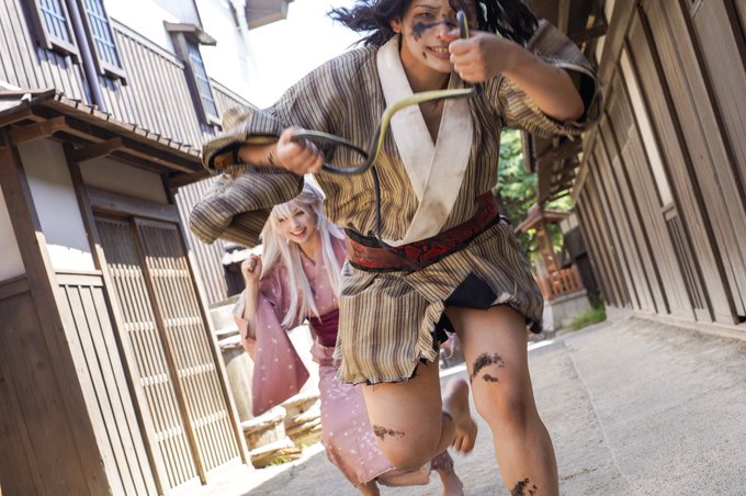 【cosplay】鬼滅の刃〜遊郭編〜 宇髄「オラッさっさと来い!」 善子「きゅ〜」 炭子@Ruki_00525 善子@ponzu_826 宇髄RUi Photo:@sweetonamino さん #コスプレ #鬼滅の刃 #遊郭編 #アコスタ空庭温泉 #コスプレイヤーさんと繋がりたい #カメラマンさんと繋がりたい