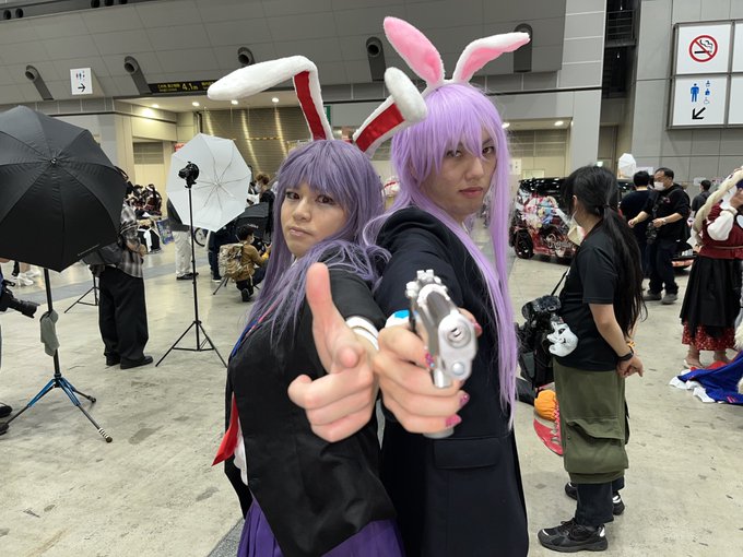 おそくほーでーす。 今日は鈴仙・優曇華院・イナバちゃんのコスプレしておりますですー! よろしくお願いいたしまーす! #コスプレ #鈴仙・優曇華院・イナバ #東方Project #秋季例大祭9 #博麗神社例大祭