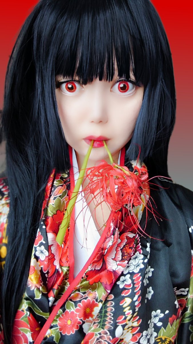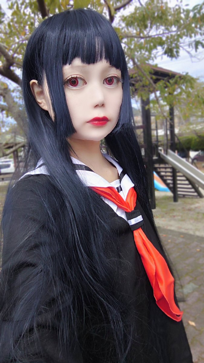 深夜テンションで取った閻魔あいちゃん風コスプレ(?)です😅 ケショウシテナイヨー ビジンニナリタカッタナァーー #地獄少女 #閻魔あい #深夜テンション #コスプレ #あくまでコスプレ風です #悪気は無いです #美人じゃなくてすみません