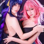 Wanna join us?💜 - #eimiko evening dress version inspired by @ringeko_tan ✨ IG: @/carol_kxin @/iris_kyin #genshinimpact #yaemiko #八重神子 #cosplay #raidenshogun #雷電将軍