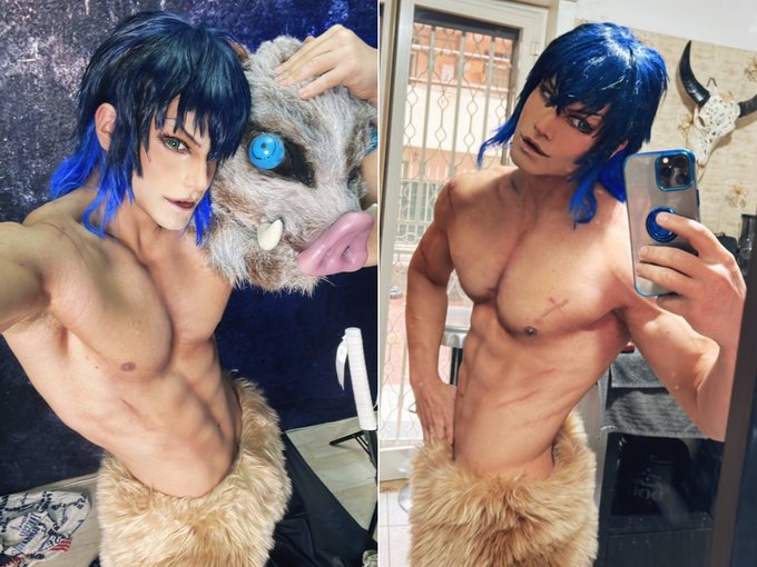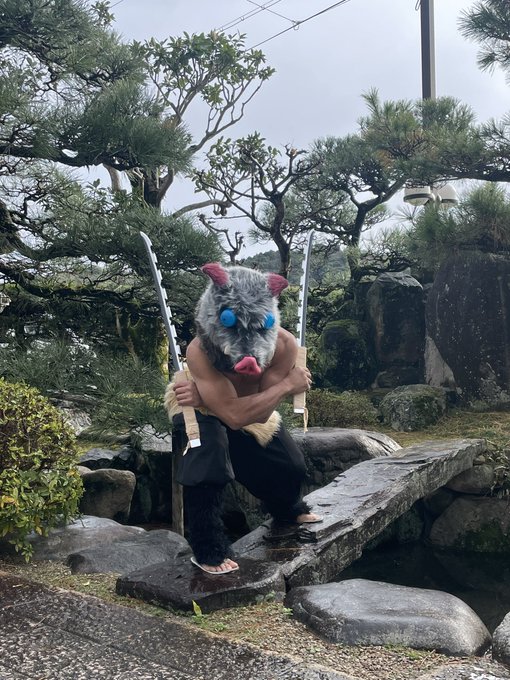 TANKENTAI! TANKENTAI! 🐗✨ Inosuke Hashibira - Demon Slayer 💙 . . big shoutout to @espadasymas for these amazing swords replica ✨ . . #inosuke #kimetsunoyaiba #demonslayer #inosukehashibira #嘴平伊之助 #鬼滅の刃 #嘴平 #鬼滅の刃遊郭編