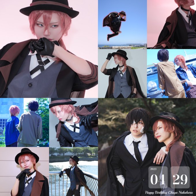 BSD/COS/ドク/転生設定/学スト捏造衣装 ちゅーや!誕生日おめでとう! ストブリ原作再現や捏造学スト併せした時ののお写真でお祝い感出してみる☺️ 本当に幸せになって欲しいんだよな!!! #文スト最小幹部生誕祭 #4月29日は素敵帽子くんの誕生日