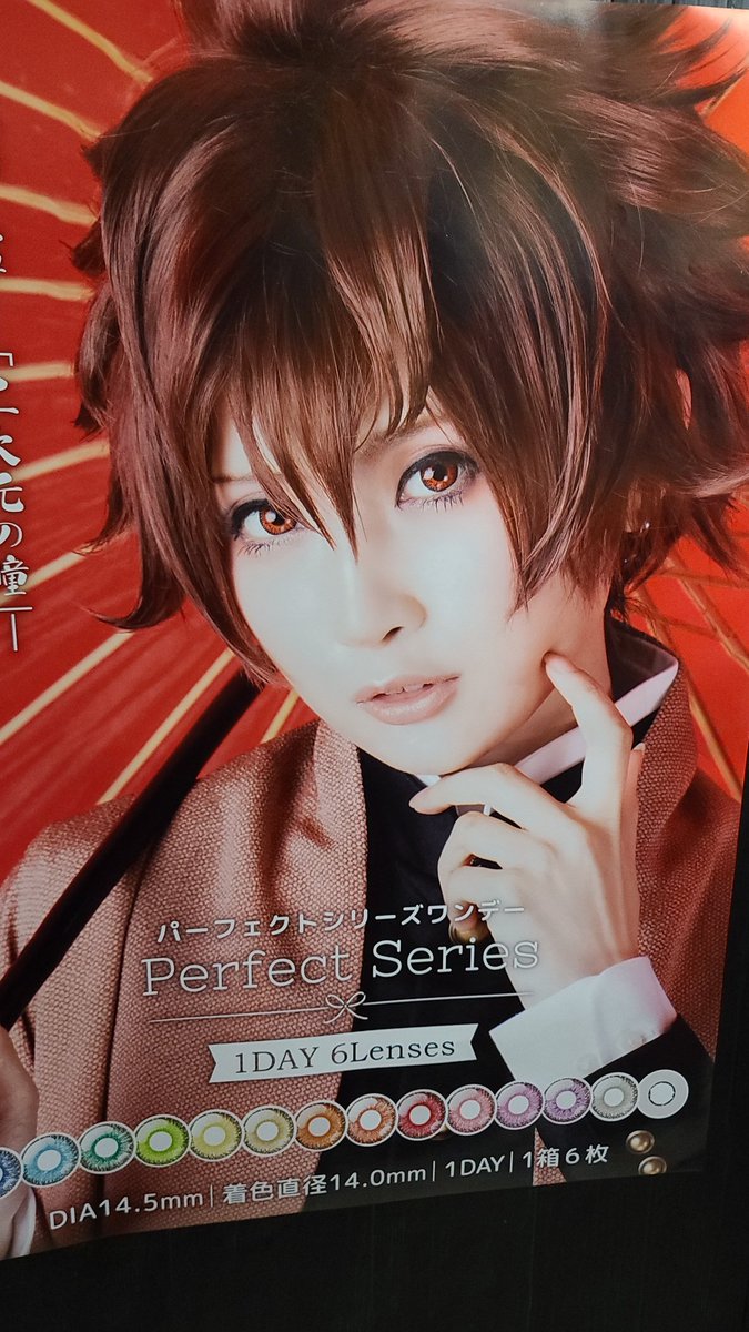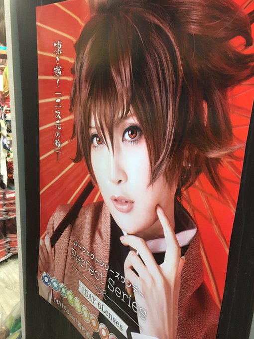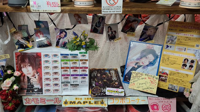 ウィッグショップMAPLE池袋店×カモミールさんコラボコーナー2回目!行ってきました!!😆✨✨ とてもかっこいいカモミールさんのポスターと綺麗なカラコンにうっとりです!☺️✨✨ #MAPLEウィッグ #コスプレイヤーカモミール