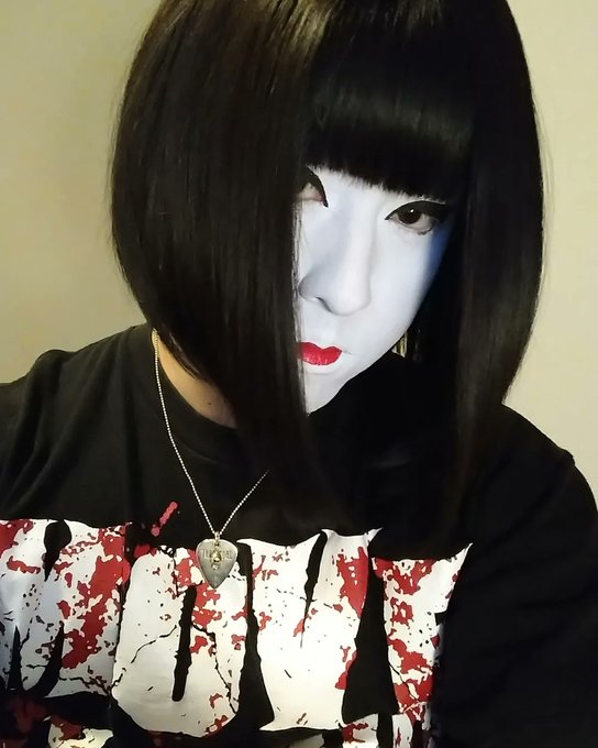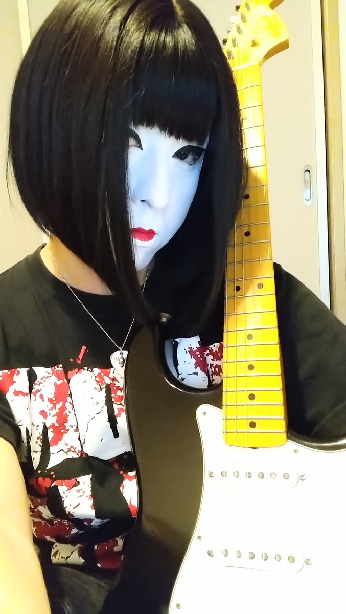 ある所で私の姿を見た女性が「めちゃ綺麗で羨ましい!!」と言ってくれました!!嬉しいなぁ🤗 #コスプレ初心者さんと繋がりたい #コスプレ #白塗り #メイク #tシャツ #じどり晒すとフォロワー増えるって聞いたんですが #ギター