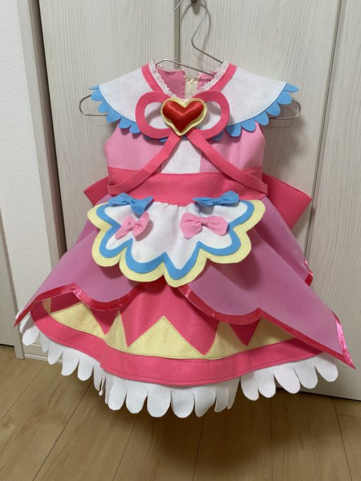 「デリシャスパーティプリキュア」しんせん中学校制服コスプレ衣装完成しました~❤️ 芙羽ここねちゃんタイプなのでボタンホール空けてません(省力化)。 最初に買った黄色部分の布が気に入らなくて、買い直したりしてたら時間かかっちゃった…… #コスプレ #デリシャスパーティプリキュア #precure
