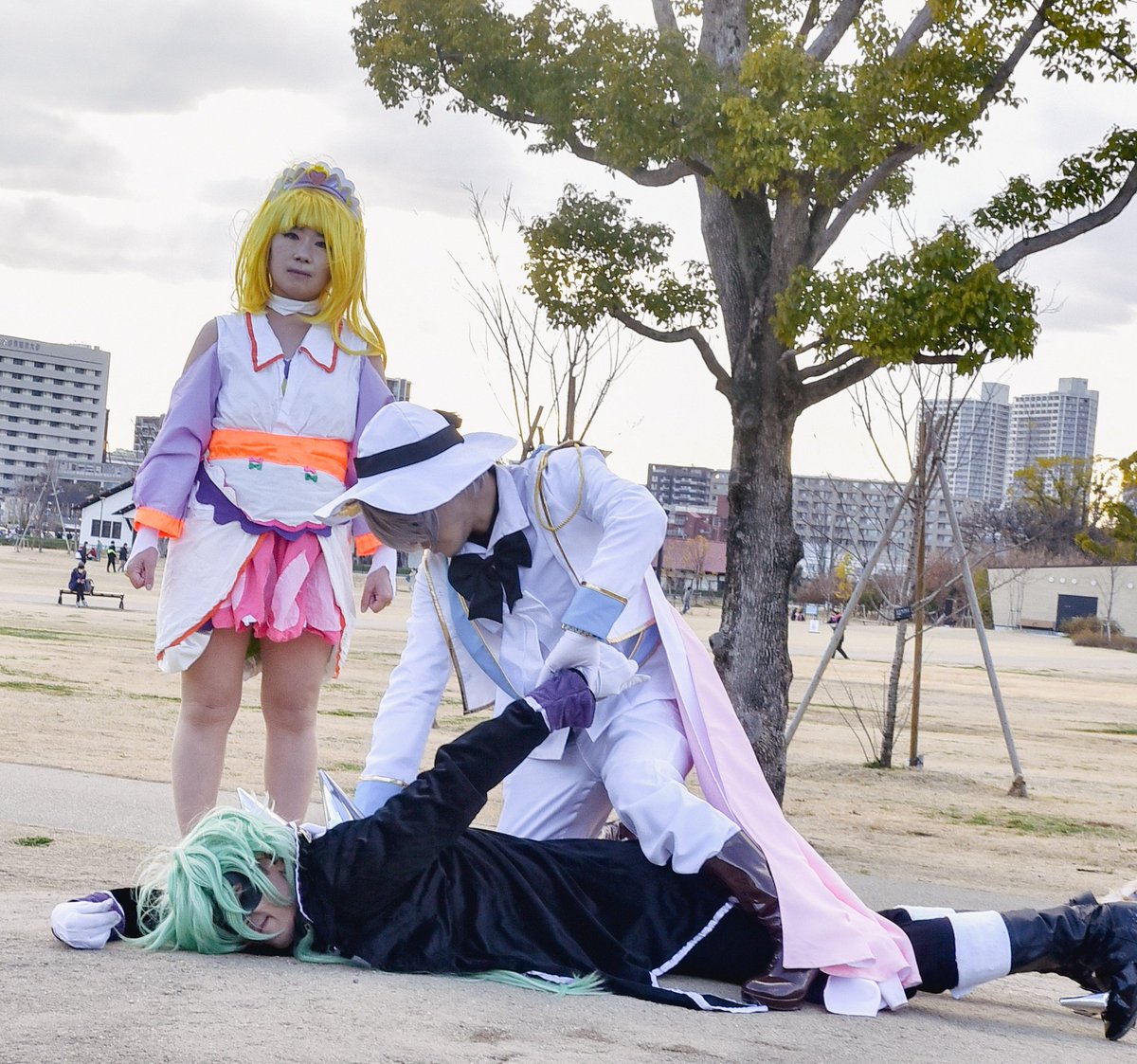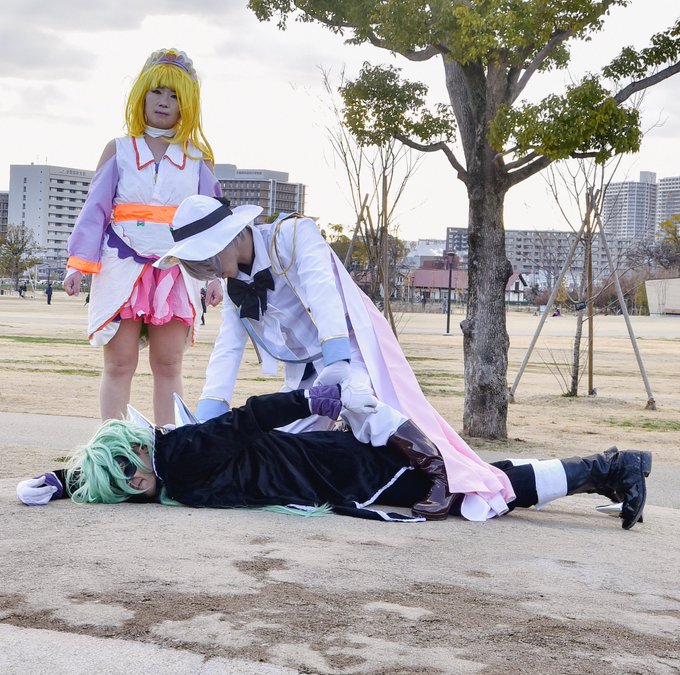 キャラは違うけどデパプリアイキャッチのオマージュ再現 「ブラックペッパー」自分(@GouChoji) 「キュアフィナーレ」あいさん(@AI10387) 「ナルシストルー」丸楠さん(@ReitoMarx) 撮影:U.M(ゆえむ)さん(@ambitious530) #コスメルin安満遺跡公園 #コスメル #デパプリ #デリシャスパーティプリキュア