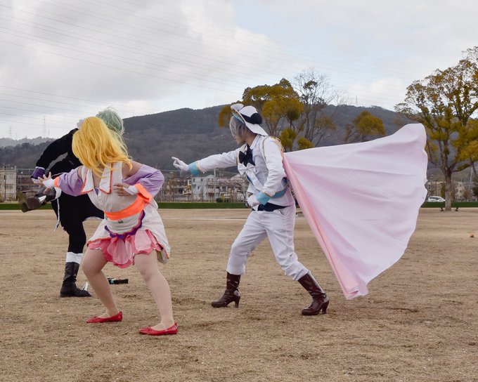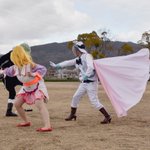 マントのなびき具合が最高!! 「ブラックペッパー」自分(@GouChoji) 「キュアフィナーレ」あいさん(@AI10387) 「ナルシストルー」丸楠さん(@ReitoMarx) 撮影:U.M(ゆえむ)さん(@ambitious530) #コスメルin安満遺跡公園 #コスメル #デバプリ #デリシャスパーティプリキュア