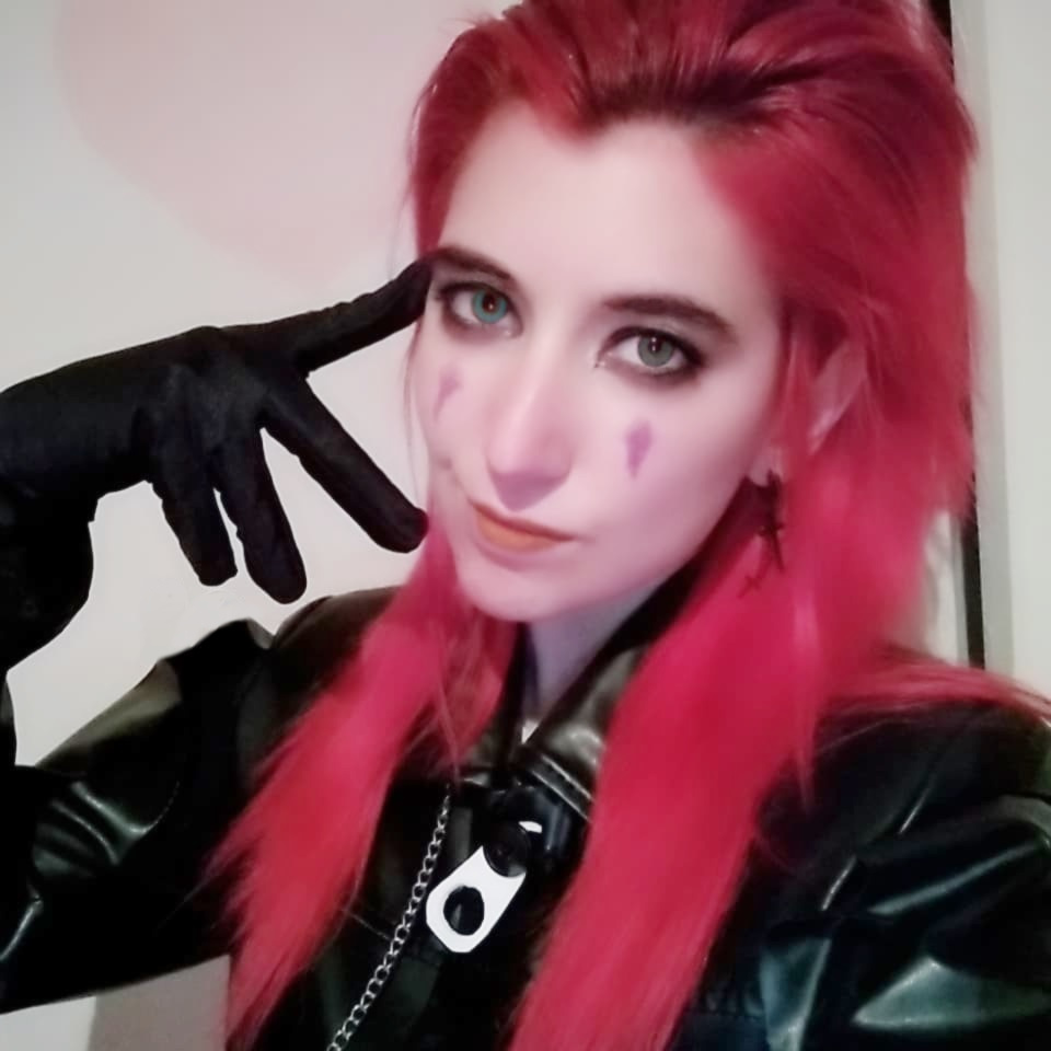 I wanted to play with makeup, so here’s some poorly executed #ShigarakiTomura #cosplay feat my cat. #bnha #MyHeroAcademia #axel #highlandlynx