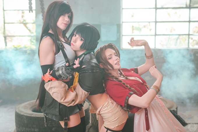 Final fantasy girls 🧡 Aerith: @_yuhimee Tifa: @MiciaGlo Yuffie: @Himeecosplay Photo: @Valentinpicture #ffvii #ffviir #aerith #TifaLockhart #yuffie #cosplay #squareenix