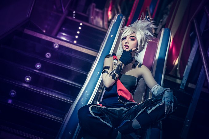 A couple of my K/DA Akali pictures that I took at #Magnificon ! I feel much better with joggers and baggy pants, that's why I didn't have leggings then 😅But IMO they look even better! #Akali #LeagueofLegends #KDA #Cosplay