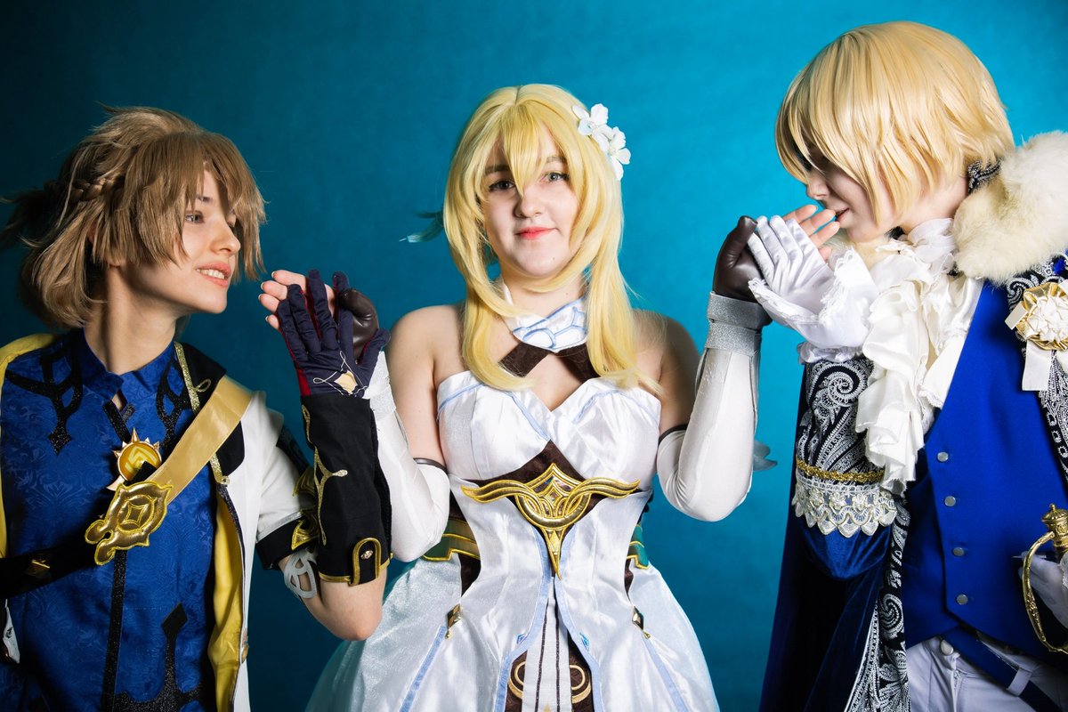 Happy Valentine's Day ❤ Albedo @connorsamuel5 , Lumine @inikatsu.cos Photo: Northern Team #cosplay #genshin #genshinimpact #dainsleif #lumine #albedo #dainslumi #albelumi