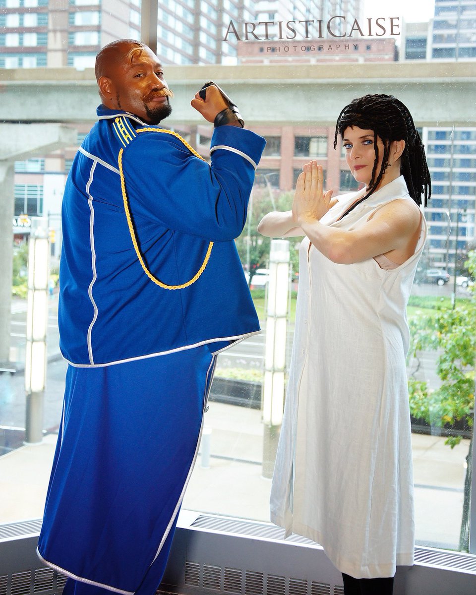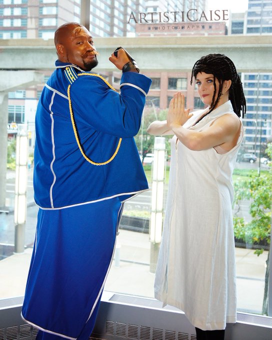 For #fullmetalfriday here’s a photo of my #IzumiCurtis with the #StrongArmAlchemist, Major #AlexLouisArmstrong, cosplayed by @amaseacosplay, whose birthday was yesterday! 🎂💝🎶😊 #cosplay #izumi #teacher #housewife #alchemist #fullmetalalchemist #fullmetalalchemistbrotherhood