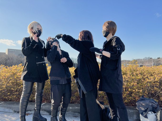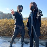 きーこキリト@freezehill_key と! ひなカリュウ@h_22455 と! あおせタケオ@aose0711 と! いばらギル@Le_rire_dAngelo 、、身長差完璧wひなさんとの差、20cm🤩 #AngeloYoyogi #angelo
