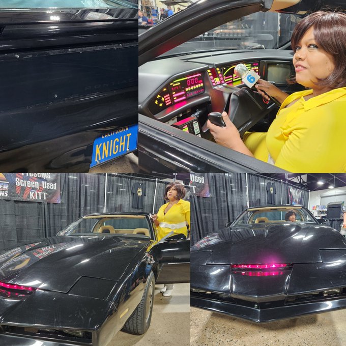 The #apriloneil interviewed the best talking car on TV #Kitt this wasn't a replica it was an actual screen used kit. Made my day, K.i.t.t is my fav car. #teenagemutantninjaturtles #knightrider #ladyjcosplay #ladyjnerdyenterprises #apriloneilcosplay #tmnt #tmntcosplay #retrocon