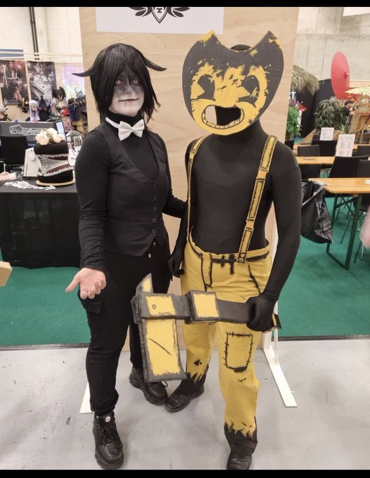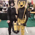 Guys you have to check out this incredible father/daughter #Bendy cosplay my friends did for the Barrie Comic Con! I mean . . . the attention to detail, can you even???? #BATIM #BATDR #AliceAngel #InkDemon #cosplay #Bendy_and_the_ink_machine #Bendy_and_the_Dark_Revival