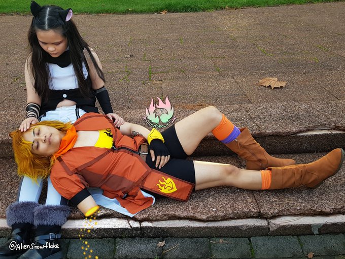 All costumes made by me. I'm Yang. Blake is my sister #rwby #cosplay #yangxiaolong #blakebelladonna #bumbleby