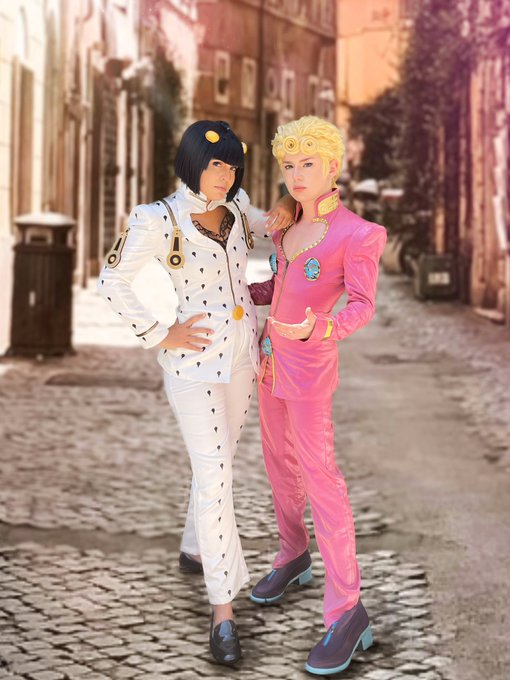 Arrivedercci 👋 Giorno: @TNTCosplays Bucciarati: @Jurassic_Jazi 📷: @bubbleteatwitch Costume: @miccostumes Wig: @ArdaWigs #JoJosBizarreAdventure #jjbacosplay #giornogiovanna #brunobucciarati #cosplay #cosplaytwt