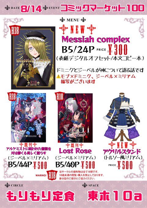 委託で明日はこちらの東方の既刊も持っていきます〜!机に出てないかもしれないので興味ある方はお声がけください〜 ⭐︎まじかる咲夜ちゃん本 ⭐︎ルーミア本(血表現あり) ⭐︎フランちゃん本(血表現あり) ⭐︎村紗本(軽めのホラー) 8/13土曜日 西く17bです! #C100お品書き #C100 twitter.com/tiita132155/st…